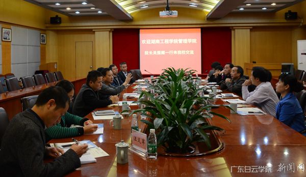 12月9日,湖南工程学院管理学院吴振顺院长一行七人来我校访问交流。我校副校长刘跃南代表学校接待了来访宾客,管理学院院长李新庚、财经学院院长沈颂东以及相关专业负责人参加了座谈和交流。