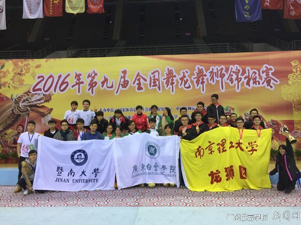 为推动龙狮运动发展,促进龙狮爱好者交流,第九届全国舞龙舞狮锦标赛于2016年11月24日至29日在江苏南京举行。此次大赛共有来自全国各地42支队伍、400多名运动员参加,而我校龙狮团主要由大三学生代表参赛。