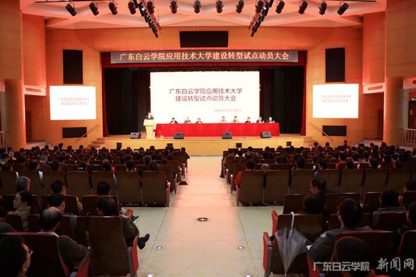 近日,省教育厅公布了广东省普通本科转型试点高校名单,我校作为广东省14所普通本科高校之一顺利入围,成为全省首批转型试点高校。11月10日下午,学校在多功能礼堂召开应用技术大学建设转型试点动员大会,学校董事会及党政领导出席会议,全体教职工参加会议,谢可滔董事长作重要讲话,黄大乾校长作动员报告,刘跃南副校长宣读文件《广东省教育厅关于公布广东省普通本科转型试点高校名单的通知》,教务处处长李红英、建筑工程学院院长郭宝生分别代表职能处室和教学单位表态发言。大会由学校党委书记刘剑锋主持。