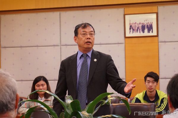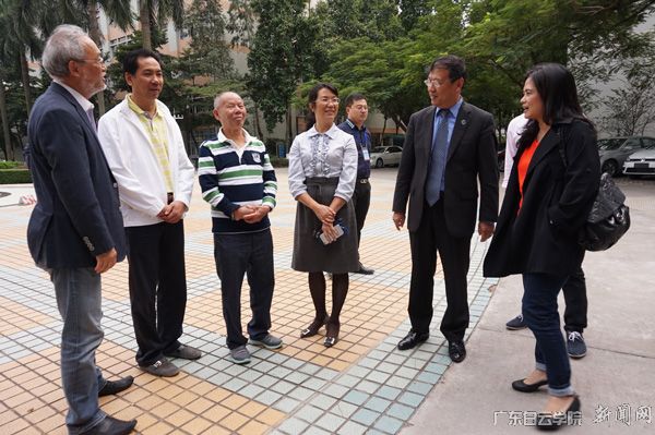 汇报会前,我校董事长谢可滔先生和副董事长谢少华女士会见了林东会长和恽福龙校长, 董事长对林东会长91岁高龄仍坚持从事慈善公益事业表示由衷地敬佩,感谢林东先生及香港东井圆林东慈善基金的支持,帮助我校师生成功完成2016年穗港青年文化交流活动。林东会长对我校的教育理念、校园环境和学生素质给予了高度评价。恽福龙校长对我校的办学规模、质量和校园文化给与了高度赞赏。沈根生副校长、学生处陈峰处长、外国学院和国际学院党总支朱玲书记,财经学院党总支陈理玫书记,广州市白云工商技师学院团委乔爽书记参加了会谈。