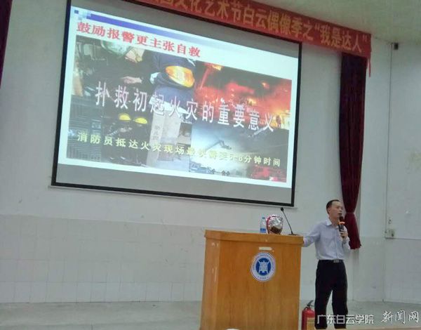 11月3日下午,我校邀请到广州市消防协会副主任吴汝凡为我校师生进行消防安全知识讲座。学校党委副书记李纯英出席了讲座。保卫处、学生处、实践教学管理中心、总务处、图书馆以及各二级学院相关领导及300名师生听取了讲座。