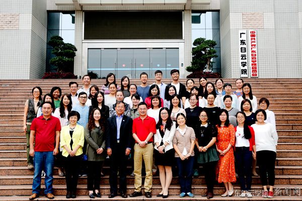 沈根生副校长(前排左四)、李向老师(前排左三)、余波老师(前排左五)和外国语学院全体英语教师合影