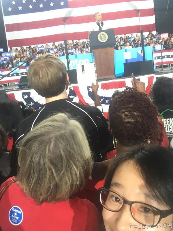 编者按 朱娜是我校外国语学院2013级英语(翻译)1班学生,在校期间曾获国家奖学金、优秀大学生标兵、校园最佳主持人、全国大学生演讲比赛广东省赛区三等奖等多项荣誉和奖励。曾多次担任学校重大活动的主持人。今年9月,朱娜被选拔去美国斯密斯约翰逊大学交流学习一个学期,11月3日在北卡罗来纳州的夏洛特“零距离”聆听了美国总统奥巴马的演讲,她感触很深。