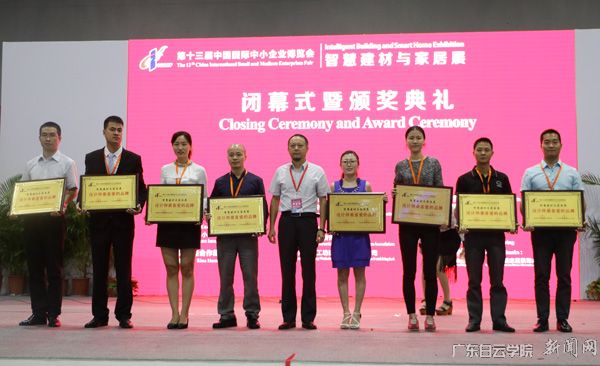 10月20日,为期五天的第十三届中国国际中小企业博览会智慧建材与家居展(简称中博会)闭幕,广东白云学院艺术设计学院院长陈华钢教授作为颁奖嘉宾应邀出席闭幕式,并代表参展企业上台发言讲话。广东白云学院学生设计作品展同时荣获中博会评出的最佳展厅设计奖。