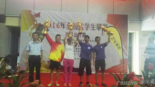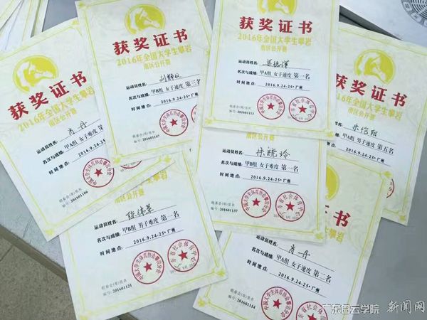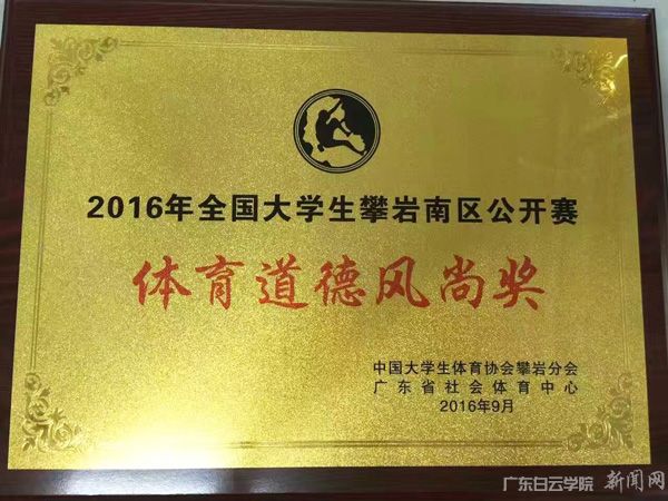 日前,2016年全国大学生攀岩南区公开赛在广州超极限攀岩馆落幕。我校派出主力阵容,全力拼搏,在比赛中取得历史最好成绩:比赛共决出16枚金牌,我校获得4金排名第一;获得甲A团体、甲B团体冠军。其中,我校包揽了甲B男、女子难度的前三名和甲A组女子速度赛的冠亚军,还获得“体育道德风尚奖”。国体育总局官网、中国体育报、新快报竞相报道我校在此次比赛中的优异成绩。