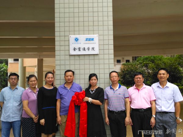 9月20日,我校与广州市金富通金融企业服务有限公司共同创建“金富通学院”揭牌仪式在至善楼一楼展厅举行。广州市金富通金融企业服务有限公司总监叶梅婷、经理吴云燕、我校财经学院院长沈颂东、实践教学管理中心主任张国安、就业中心(校企合作办)主任虞迅等领导出席了揭牌仪式。