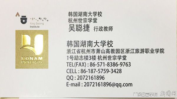 我校2016届毕业生吴聪捷同学于今年7月1日正式被韩国湖南大学杭州世宗学堂录用为行政教师,主要负责韩方和杭州各地方院校进行项目洽谈等业务工作。