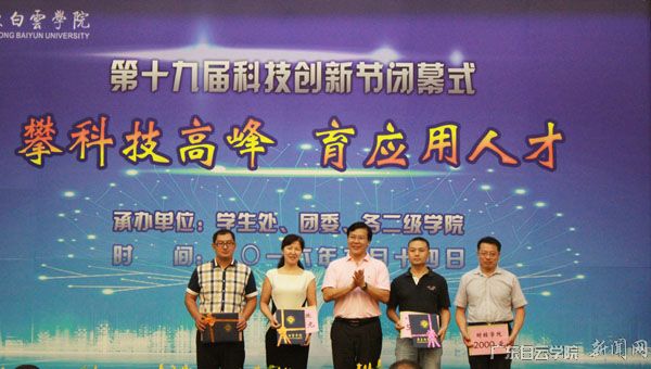 6月14日下午,以“攀科技高峰,育应用人才”为主题的广东白云学院第十九届科技创新节闭幕式在儒学堂隆重举行。学校校长黄大乾、党委副书记李纯英、副校长刘跃南、副校长沈根生,以及各职能处室、二级学院负责人和学生代表200多人参加了闭幕式。
