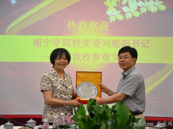 刘彪副书记听取了介绍后,对我校的党建工作和学生工作给予了高度赞扬,指出我校发展速度快,是广东民办高校的排头兵。随后,刘彪副书记介绍了南宁学院的发展历程,并就民办高校党建工作、学生工作等问题与李纯英副书记、陈峰处长等进行了深入地探讨和交流。