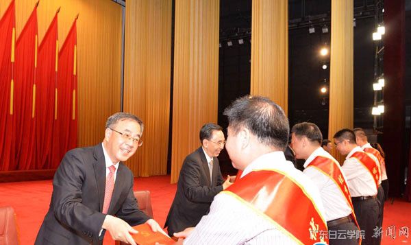 我校党委书记刘剑锋(左二)出席会议并接受表彰