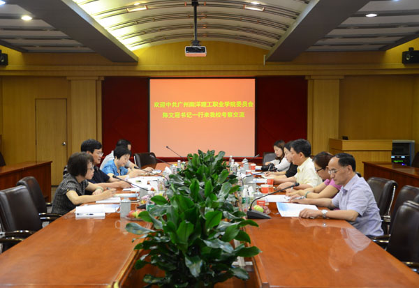 交流会上,刘剑锋书记向客人介绍了学校的基本情况,重点阐述了我校坚持政治核心,立足立德树人的党建工作思路,并从我校党建工作的体制建设、阵地建设、队伍建设、载体建设四个方面向来宾作了详细的介绍;李纯英副书记介绍了我校的“书记项目”和基层党组织建设等工作;邓妍妍部长对我校党校的三级培训制度和“两学一做”学习教育开展情况作了详细的说明;学生处陈峰处长应客人要求详细介绍了我校的舆情引导工作。陈文冠书记一行对我校的“书记项目”等党建工作等表示高度的赞誉,并详细讲解了广州南洋理工职业学院“大学生军政教导队”组织建设情况,随后,双方就具体工作进行了一对一的交流和探讨。