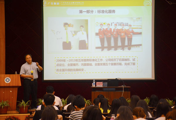 潘建国教授讲解了购买经济的发展史。从产品经济、商品经济、品牌经济发展到现在的的服务经济时代,大众购买商品的心理也在逐渐的变化,服务创新成为了近代零售产业面对的一大挑战。