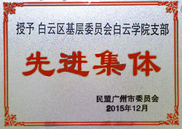 2015年,民盟广东白云学院支部在盟市委、白云区基层委员会和广东白云学院党委的关心、指导和支持下,全体盟员积极落实支委会提出的年度工作计划,在立足本职工作建功立业的同时,努力参与省、市、区主导的社会服务、统战理论研究、参政议政、献言献策等盟务工作,取得了可喜的成绩,硕果累累。盟市委从近130个民盟支部中评选出13个优秀支部,广东白云学院支部名列其中。同时,支部主委被评为广州市优秀盟务工作者,柳德舫被评为广州市优秀盟员。在全区受表彰的国家、省级8项作品成果中,广东白云学院支部占有4项。在受表彰的区级7项作品中,广东白云学院支部占有3项。其中,支部撰写的《关于加强高校创新创业教育的建议——以广东白云学院为例》获得区“献一策”活动三等奖。