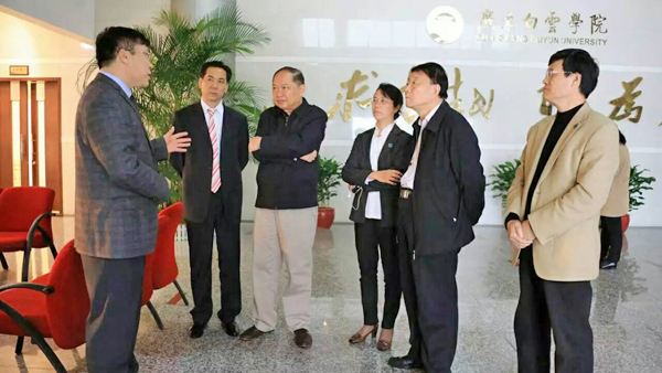 《民办教育促进法》对我国的民办教育事业发展起着巨大的推动促进作用。为了解广东省民办高等教育的发展现状,征求对修改《民办教育促进法》的意见和建议,3月22日下午,全国人大教科文卫委员会副主任委员王佐书、严以新一行在广东省人大教科文卫委员会主任梁万里和省教育厅巡视员赵康的陪同下莅临广东白云学院开展《民办教育促进法》的立法调研工作。学校董事长谢可滔、副董事长谢少华、校长黄大乾、党委书记刘剑锋等人接待了副主任委员王佐书、严以新一行。