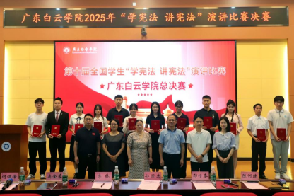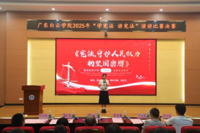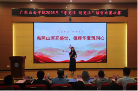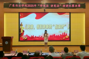 为深入学习贯彻习近平法治思想,全面落实新时代高校法治教育工作要求,6月24日上午,广东白云学院2025年“学宪法 讲宪法”演讲比赛决赛在北校区明德楼107报告厅隆重举行。校党委书记孙国忠、依法治校办公室主任李林、马克思主义学院副院长邢增銮等嘉宾评委出席活动,与现场师生共同见证了一场精彩纷呈的宪法精神盛宴。