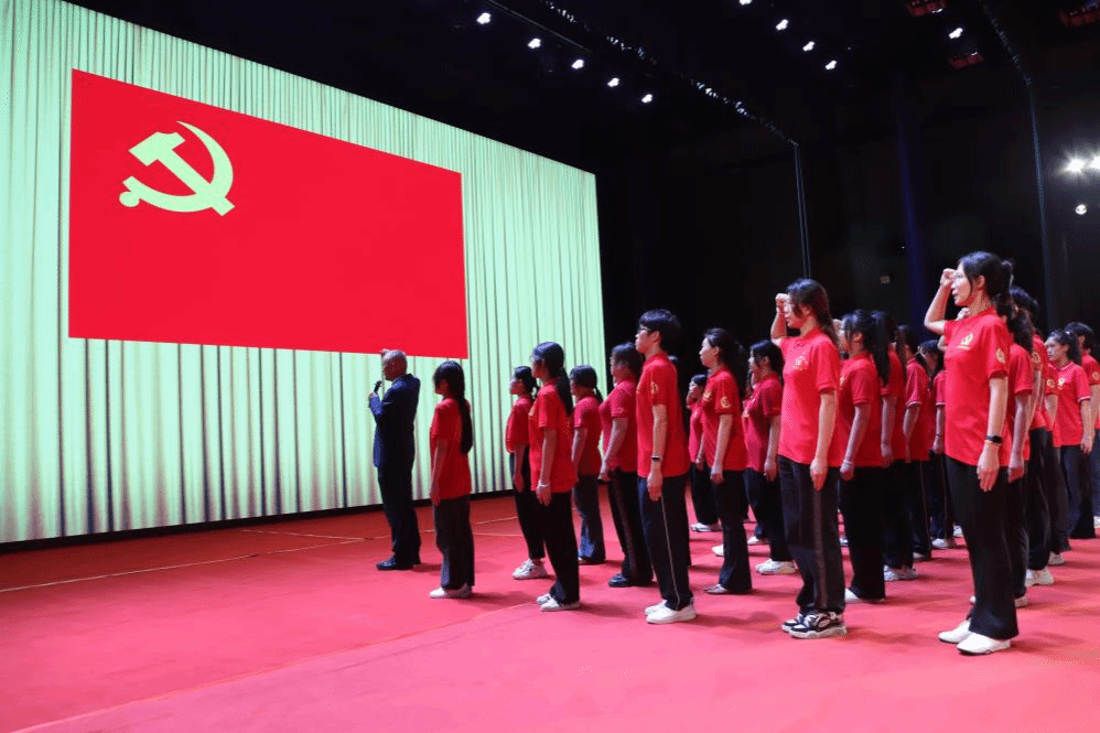 一批优秀师生光荣加入党组织或按期转为正式党员。在鲜红的党旗下,新党员们紧握右拳,进行了庄严神圣的宣誓仪式。铿锵誓言响彻会场,昭示着信仰的传承与力量的凝聚。