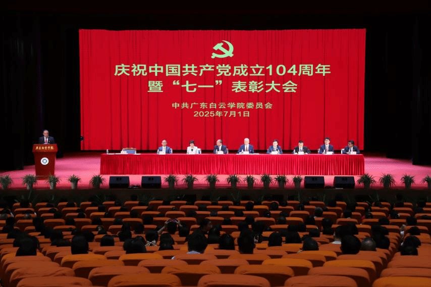 7月1日,中共广东白云学院委员会在北校区白云大厅庄严举行庆祝中国共产党成立104周年暨“七一”表彰大会。学校党委委员、党员校领导与全体教工党员、学生党员代表齐聚一堂,共同回顾党的光辉历程,表彰先进典型,凝聚奋进力量。