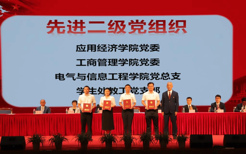 在庄重热烈的氛围中,先进代表依次上台发言。优秀学生党员代表、会计学院王锴彬代表青年党员庄严承诺,将恪守校训校风,以“功成不必在我,功成必定有我”的担当,为中国式现代化建设贡献力量。优秀教工党员代表、教育学院白军胜阐述了个人“立心、立行、立人”的育人实践,展现了党员教师为党育人、为国育才的赤诚情怀。优秀党务工作者代表、应用经济学院康艺之总结分享了支部在党建引领、社会服务和工作创新中的成果,并表达了持续努力的决心。优秀组织员代表、工商管理学院柯玉舟回顾十年组织员工作,分享了以“政治三力”筑牢信仰根基、以“工匠精神”锤炼业务能力、以“创新思维”激活组织力量的心路历程。先进教工党支部代表、智能制造工程学院李林,先进二级党组织代表、应用经济学院党委书记张泽彬分别分享了成功创建广东省第五批党建工作样板支部和标杆院系的成功经验和心得体会。