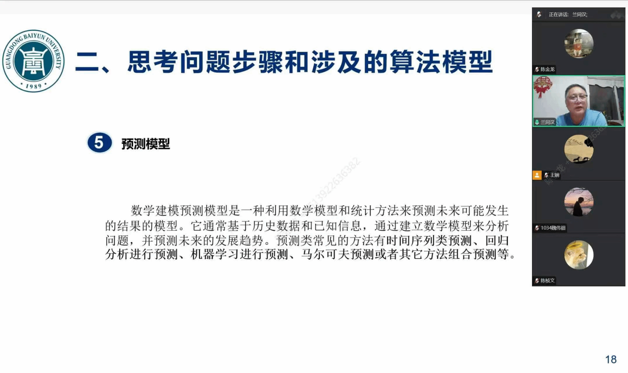 本次培训汇聚了数学建模教学团队的骨干力量,授课与指导工作均由经验丰富的教师承担。兰同汉、杨小迪、周隽、刘玲、陈金龙、王娴、马鹏飞7位老师组成核心授课团队,结合各自专长,分模块深入讲解建模理论与实战技巧。与此同时,彭雨明、刘会灵、凌卫平、陈博照等11位老师负责课后答疑、作业批改及学习督导,全程跟进学生的学习进度。尽管正值暑期,全体教师仍坚守岗位,通过线上线下相结合的方式,确保学生的问题得到及时解答,充分展现了教师团队的敬业精神。