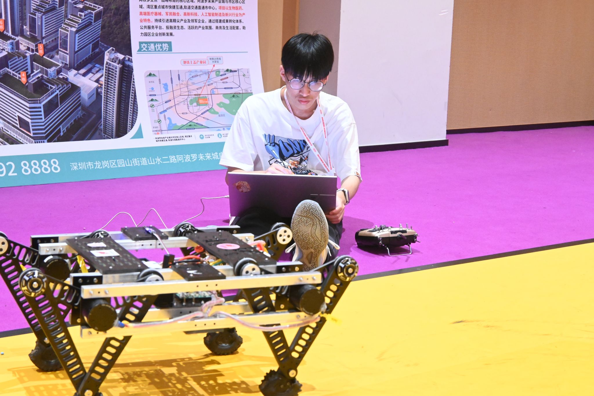 在“飞身上篮”预选赛中,广东白云学院机器人队表现抢眼。面对众多强队队员们操作自主研发的机器人沉稳应战——运球流畅稳定,投篮精准高效,赢得评论席连连称赞:“这支新队伍操作熟练、稳定性强,完全不像是首次参赛。”