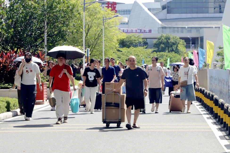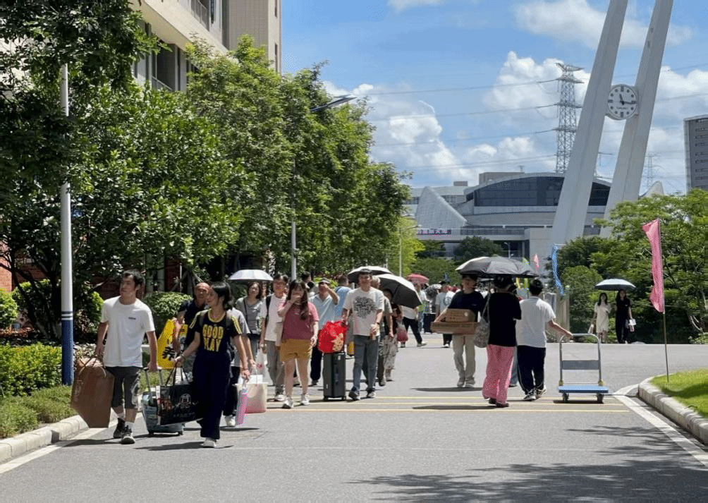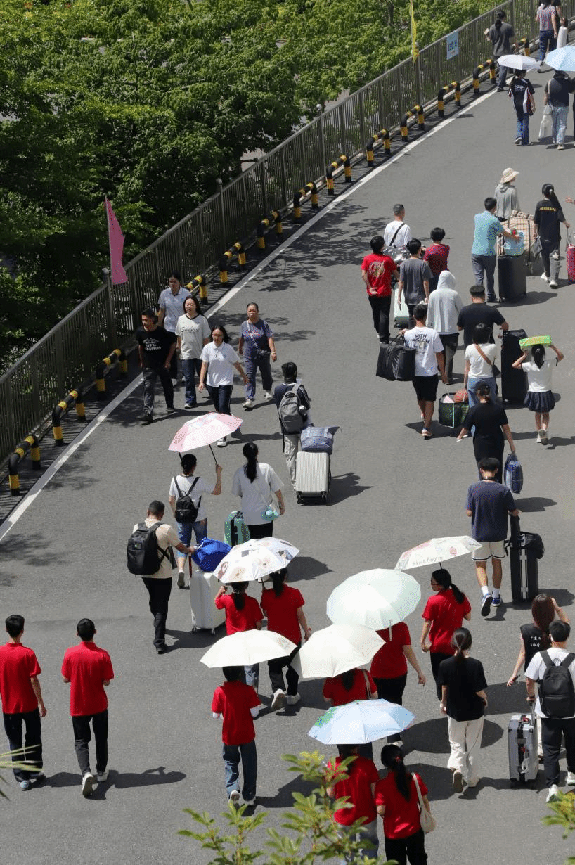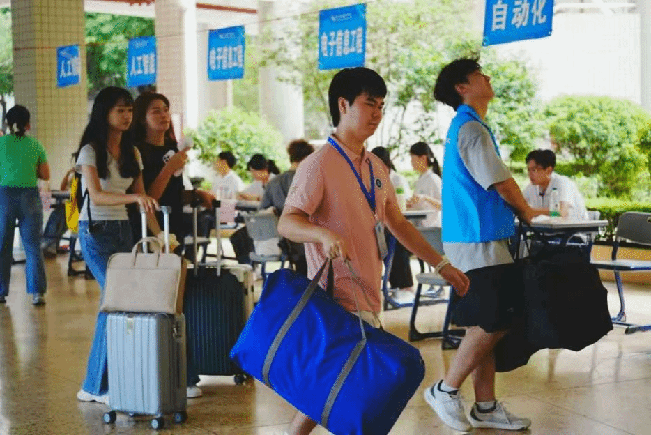 校道上,最亮眼的风景线当属穿彩色马甲的志愿者们——“同学,报到点往这边拐,我帮你拎箱子!”“别着急,登记表填完我带你去宿舍!”汗水浸湿了马甲,却没减分毫热情,他们用默契的配合、高效的行动,让迎新现场像“齿轮”一样顺畅运转,把“白云温度”传递给每一位新生。