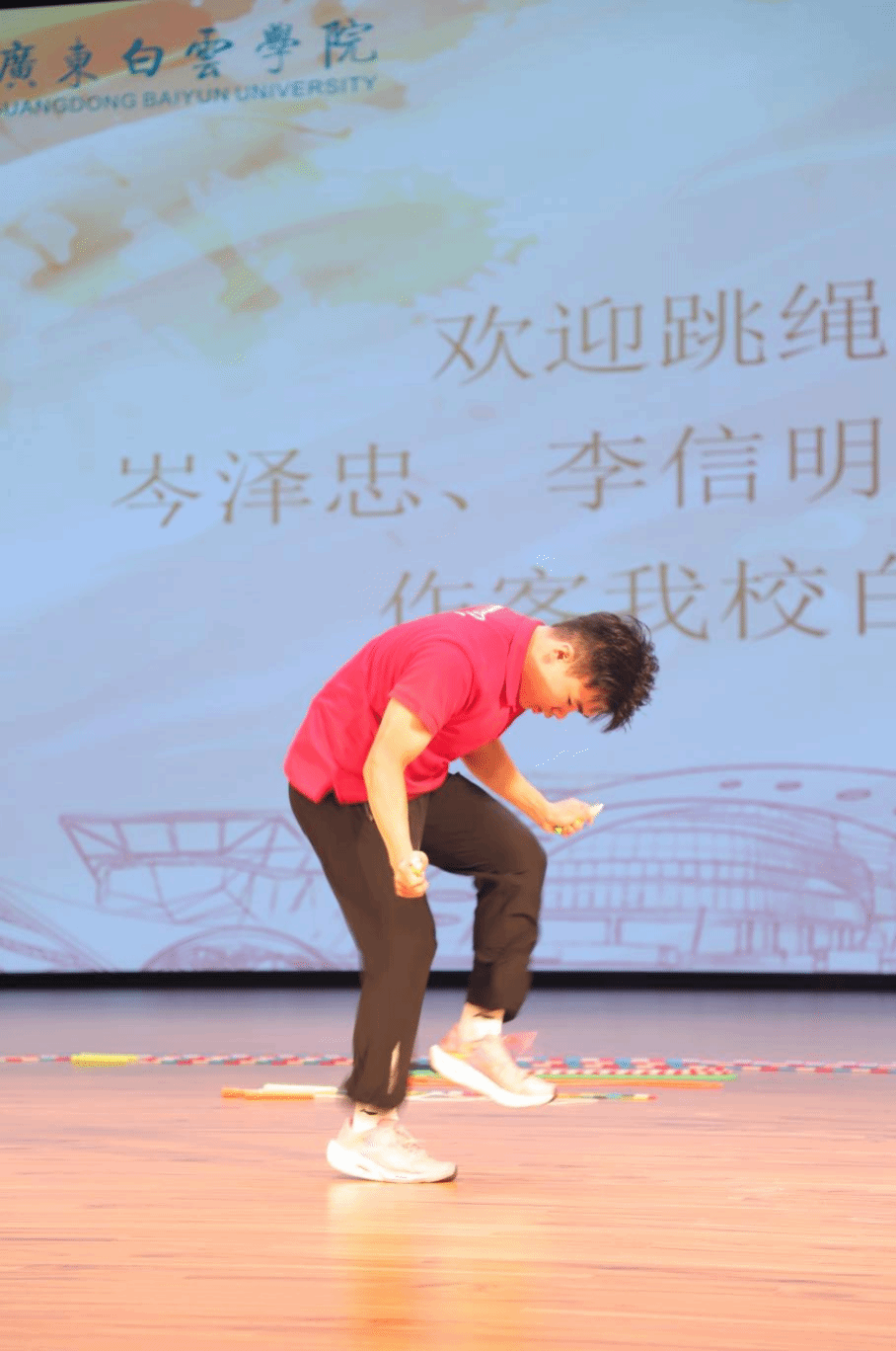 本期“白云大讲堂”不仅是一场顶尖水平的体育表演,更是一堂生动的励志课。它用最震撼的方式向现场师生展示了极限的可能,用最真诚的故事传递了奋斗的价值,并用有趣的互动将运动的种子播撒在每一位在场学子的心中。相信“冠军精神”和这份“跃动”的青春与“绳”采,将在时尚美丽的大学校园里持续飞扬,让“体育强校”建设,助力学生健康成长。(文/党委宣传部李丹丹、周钰滢 图/党委宣传部宋敏珊、简明昊 责任编辑曾进)
