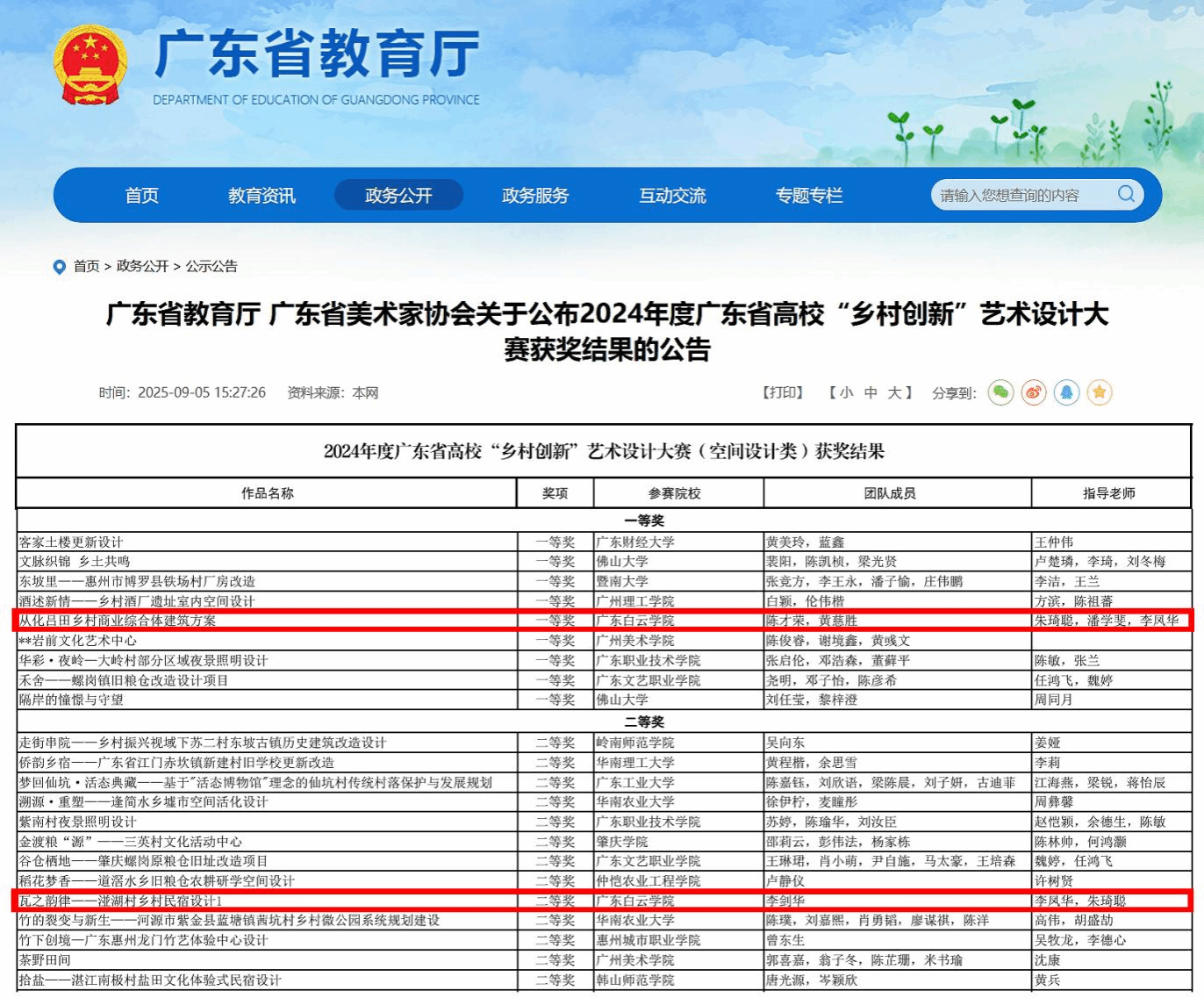 近日,广东省教育厅与广东省美术家协会联合公布了2024年度广东省高校“乡村创新”艺术设计大赛获奖名单。经过激烈角逐,我校艺术设计学院师生团队脱颖而出,共获一等奖1项、二等奖1项、优胜奖3项,展现出卓越的专业素养与创新能力。