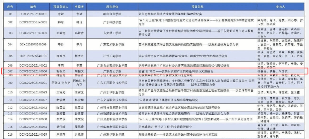 近日,广东省2025年“多彩乡村 向新而行”系列实践活动立项结果公布。经专家严格评审和各主办单位审议,从全省报送的325份课题申报中,我校胡相文老师主持的课题——《“甜蜜‘柑’动力”——安岗村贡柑产业的绿色转型与文旅融合》脱颖而出,成功入选立项。
