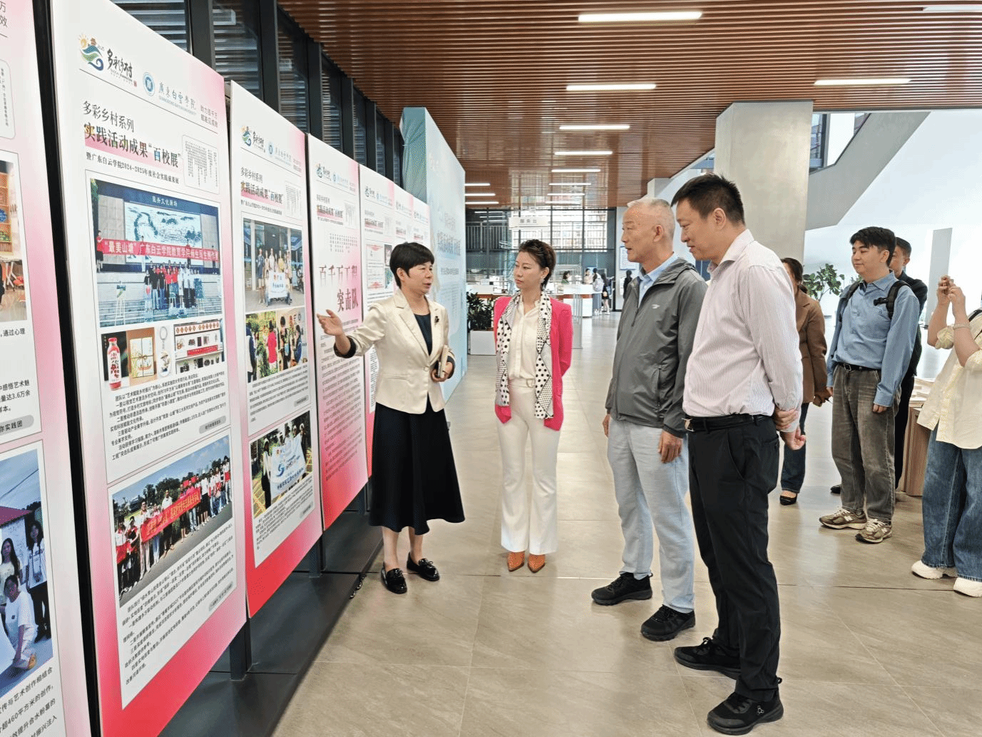 广东省省情调查研究中心主任助理李春生对学校的成果给予高度评价。他表示,多彩乡村实践活动旨在贯彻落实省委、省政府关于“百县千镇万村高质量发展工程”的部署要求,了解掌握和宣传推介乡村地情,潜移默化、润物无声开展地情教育、思政教育,激励全社会关注乡村发展、投身乡村建设。选择白云学院作为首批30个展示高校,也是基于学校在社会实践方面的成果和贡献。多彩乡村评审组副组长陈丽红对学校在百校展中的支持表示感谢,肯定学校反应迅速、行动有效、落实细心且有温度的工作特色。