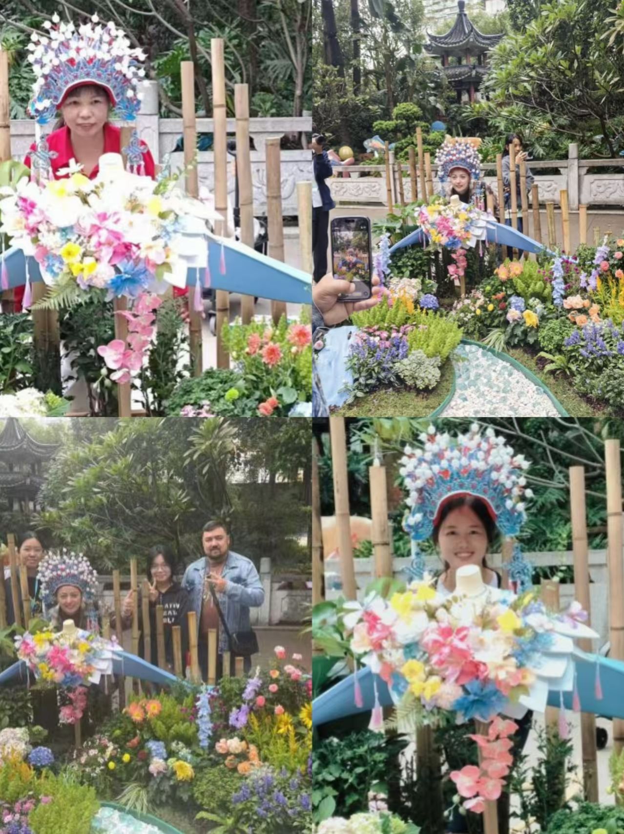 《一曲花袖绕湾来》巧妙融合岭南非遗文化与全民健身主题,成为现场焦点,吸引众多市民游客驻足欣赏。不少提前观展的市民沉浸于作品的文化意蕴之中,纷纷拍照留念。现场反响热烈,有观众称赞:“你们做得真漂亮!第一次看到粤剧元素被运用得如此精美。”一位土生土长的“西关”市民感叹:“从小听粤剧长大,看到这些作品,倍感亲切。”