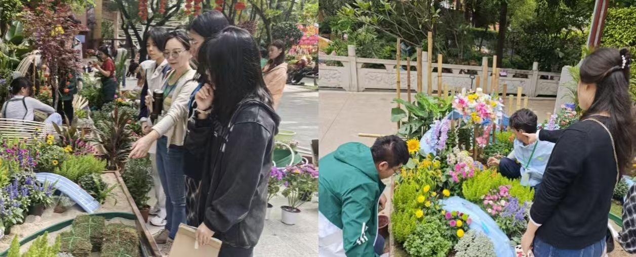 本次大赛围绕第66届羊城菊会“激情全运·活力荔湾”主题展开,我校作品以“岭南非遗焕新姿,活力全运汇湾区”为设计理念,师生团队历时一周,完成了构筑物现场制作、植物材料精准配置与整体场地的艺术化搭建。