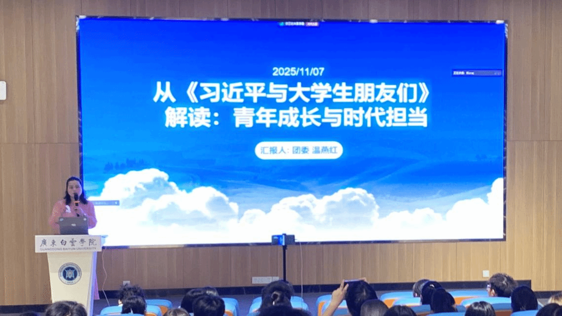 为深入学习贯彻习近平总书记关于青年工作的重要思想和关于教育的重要论述,加强青年学生思想政治引领,为党培养和输送青年政治骨干,11月7日中午,校团委在北校区图书馆二楼报告厅/西校区儒学堂组织开展了2025年广东白云学院“青马工程”培训班开班典礼暨第一讲。校团委副书记温燕红、校团委青年发展中心主任熊彦辉、校团委项目管理中心副主任邓嘉丽及135名培训班学员参加活动。