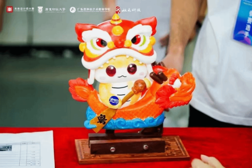 经过紧张的比赛角逐,我校两支参赛队伍均获得全国总决赛三等奖。其中,郭顺铭小组的作品是:粤蛇萌狮。作品将具有岭南文化标志的醒狮,与广东特色龙舟、十二生肖中的灵蛇巧妙融合,作品表现了吉祥如意、灵动招财的大众愿景和团结协作、勇于拼搏的人文精神。