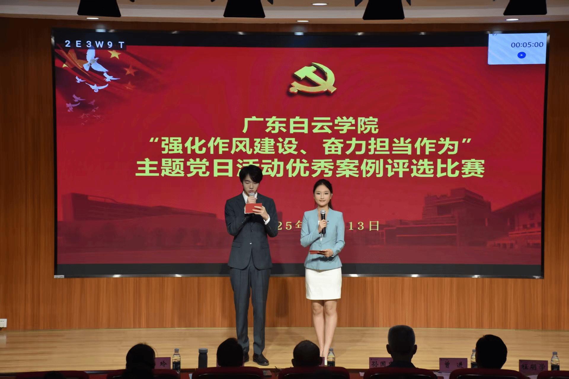 为持续深化深入贯彻中央八项规定精神学习教育成果,推动全面从严治党向基层延伸,以优良党风引领校风学风、师德师风建设,11月13日下午,广东白云学院“强化作风建设、奋力担当作为”主题党日活动优秀案例评选比赛在白云楼201报告厅举办。党委书记孙国忠、党委办公室主任李林、党委宣传部部长曾进、党委组织部部长司振伟、党委教师工作部部长程明学、党委学生工作部部长朱玲出席本次活动,各二级党组织书记、基层党务干部及学生党员代表现场观摩。
