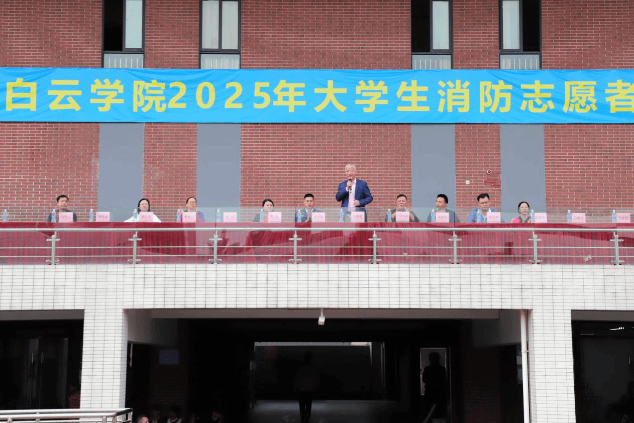 出席本次活动的领导嘉宾有白云区消防救援局大队长余开智、学校党委书记孙国忠、学工部部长朱玲、保卫处处长欧阳振勇及各二级学院党组织书记。