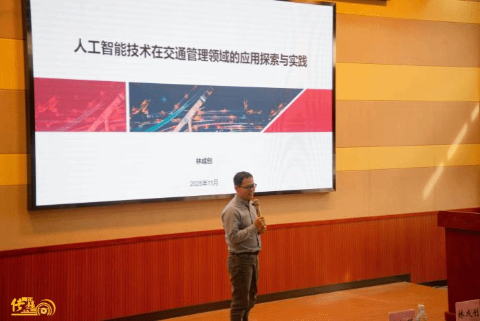 第三位演讲的是广东省交通集团智慧交通研发中心AI创新总监林成创,他的演讲主题是《人工智能技术在交通管理领域的应用探索与实践》,解读了为预防高速公路上交通事故、拥堵事件、抛洒物事件等严重事故或二次事故的发生,采用自动化、智能化手段赋能事件的主动发现,实现高速公路交通事件的“全线感知、精准识别、及时告警”,实现智慧交通为安全出行的保驾护航。