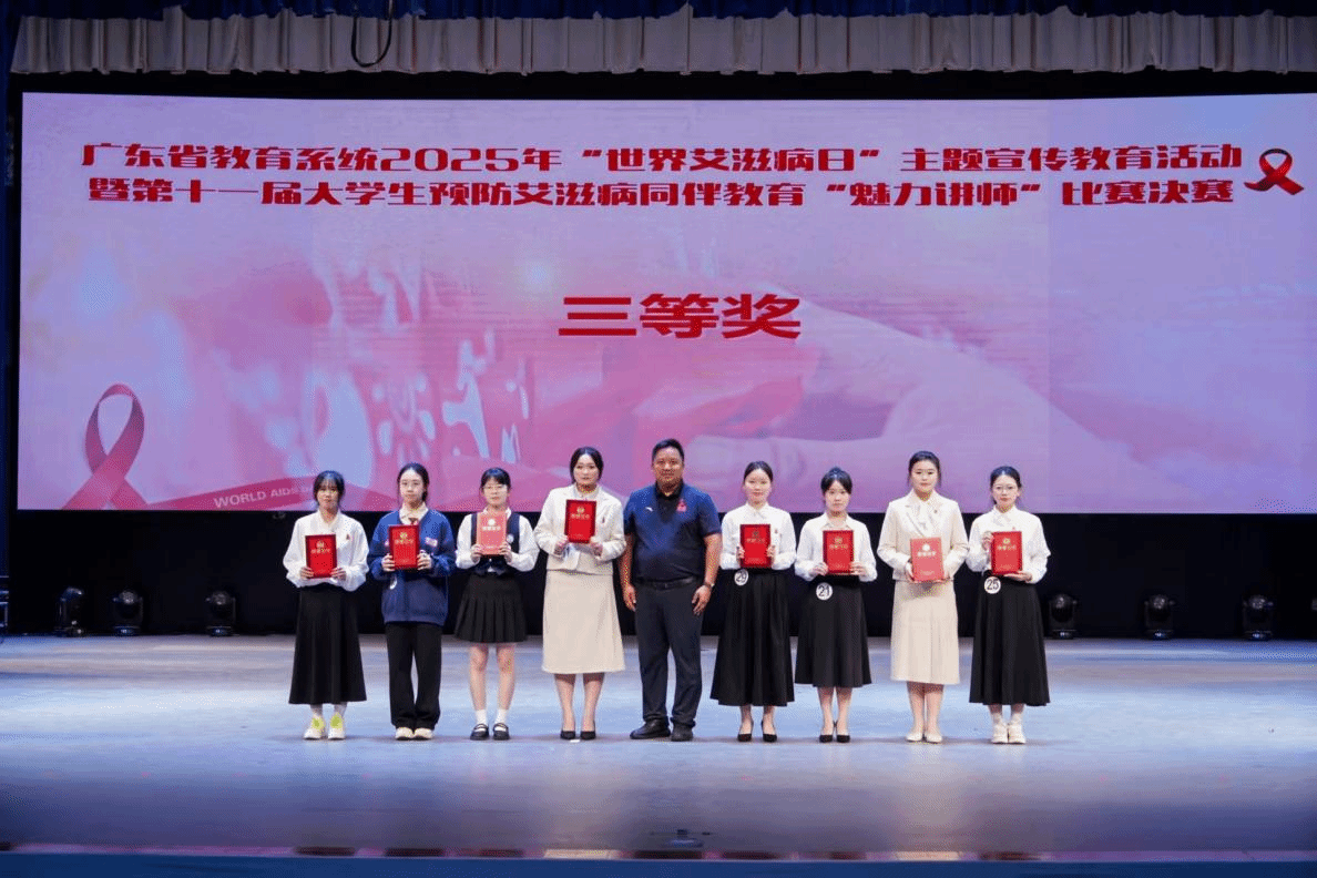 在学生健康教育宣讲领域,我校学子同样闪耀。在12月1日举办的广东省第十一届大学生预防艾滋病同伴教育“魅力讲师”比赛决赛中,外国语学院23级英语专业的黄远清同学以《HPV 退!退!退!》为主题,凭借生动的表达和专业的科普赢得了现场评委与观众的认可,最终荣获三等奖,其指导老师周开欢获“优秀指导老师”称号,我校获“优秀组织奖”。