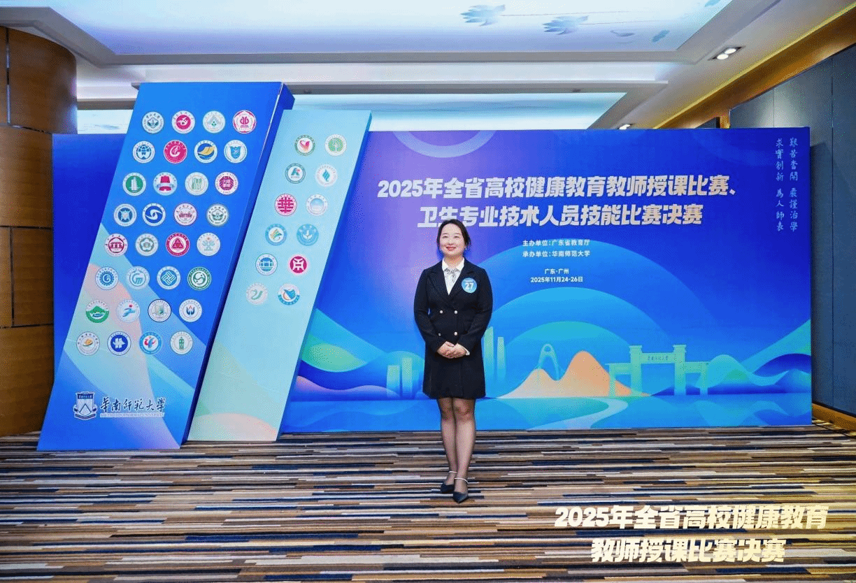 在11月26日举办的2025年广东省高校健康教育教师授课比赛决赛中,我校心理中心赵晓晗主任凭借课程《剧本杀——“流行的凶手”传染病的传播与预防》在全省一百多所高校的参赛教师中脱颖而出,荣获优秀奖。本次赛事竞争激烈,选手多来自省内知名高校,涵盖医学、护理学、心理学等专业背景。本次获奖,不仅展现了我校教师在健康教育领域的专业素养与教学水平,也反映了我校对健康校园建设与师生健康工作的高度重视。