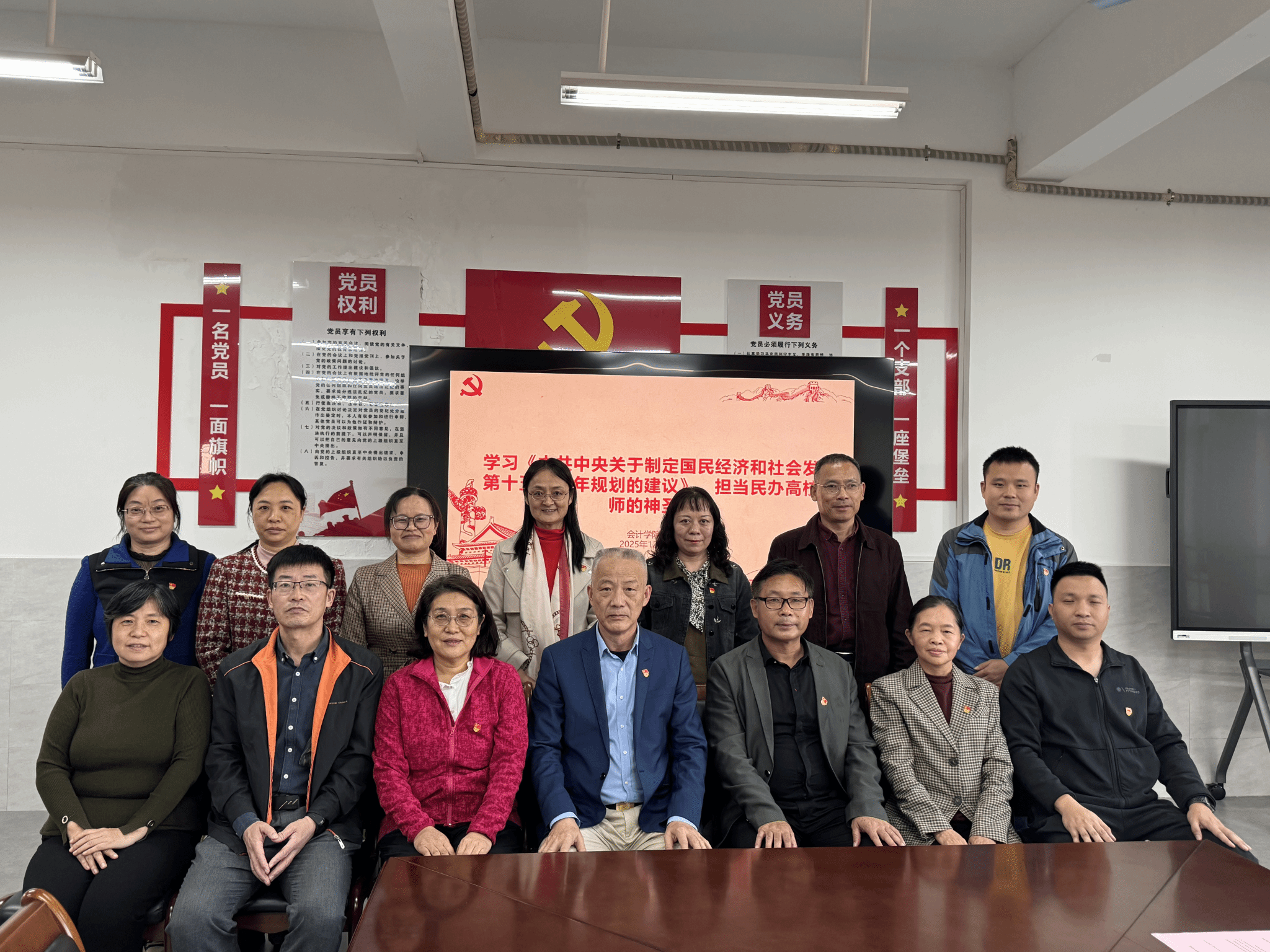 学院党委委员步瑞同志作中心发言。她围绕“学习《中共中央关于制定国民经济和社会发展第十五个五年规划的建议》精神,勇担新时代民办高校教师神圣使命”这一主题进行了重点发言。本次学习活动主要从以下四个方面有序展开:一是全面系统地解读党的二十届四中全会精神;二是深入领会“十五五”规划建议对教育事业发展的重要引领作用;三是分析“十五五”时期民办高校迎来的发展机遇;四是进一步强化民办高校教师所肩负的崇高使命与责任担当。