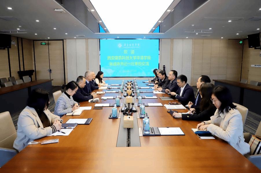 1月12日上午,西安建筑科技大学华清学院党委书记张成中一行莅临我校考察交流。我校党委书记孙国忠,党委副书记、副校长陈峰等领导在学校北校区白云楼国际会议厅与来宾进行座谈交流。