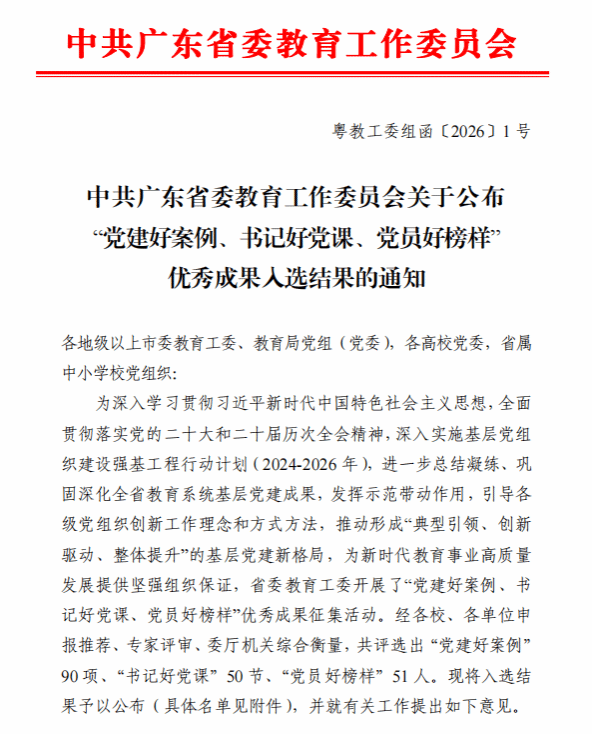 在全省教育系统基层党建优秀成果征集活动中,共评选“党建好案例”90项,“书记好党课”50门,“党员好榜样”51人。我校实现三类成果“全覆盖”,充分展现了基层党建工作的创新活力与显著成效。