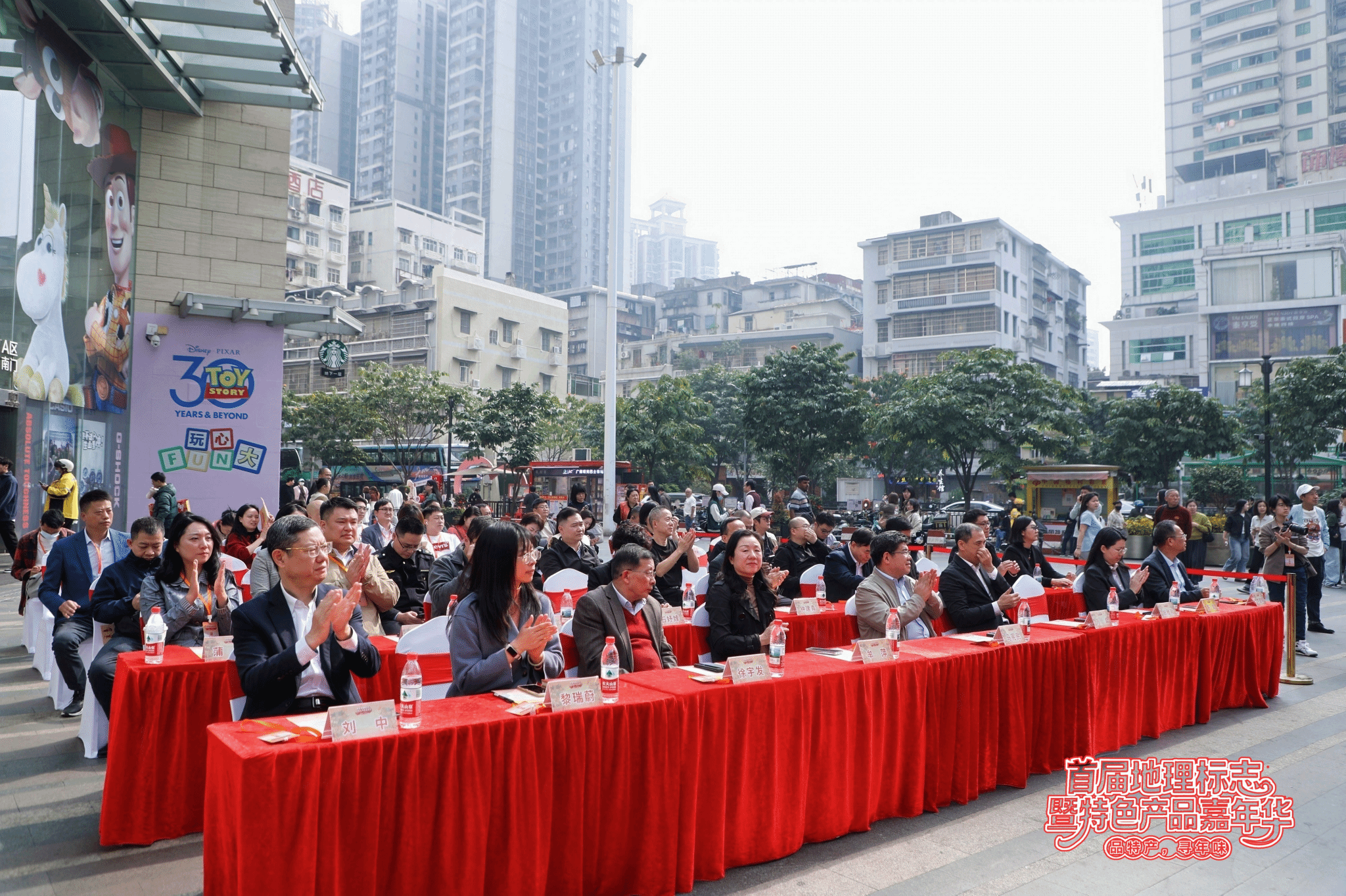 主展位区域,25个特色展位由南向北依次排开。除了此前提到的郁南无核黄皮,凤凰单丛茶、化橘红、东莞腊肠、德庆贡柑等32种地理标志产品及17种地理标志衍生品与特色产品齐聚嘉年华;地标套圈、挥毫送福、早鸟献礼等趣味活动与小游戏轮番上演。开幕式在热烈祥和的氛围中圆满礼成,领导嘉宾随即巡展,与参展企业、市民游客共享岭南风物,共赴地标盛宴。