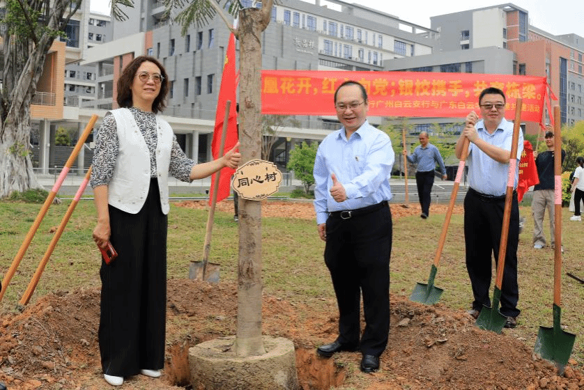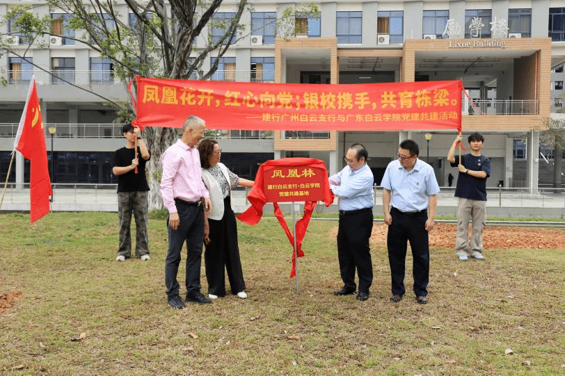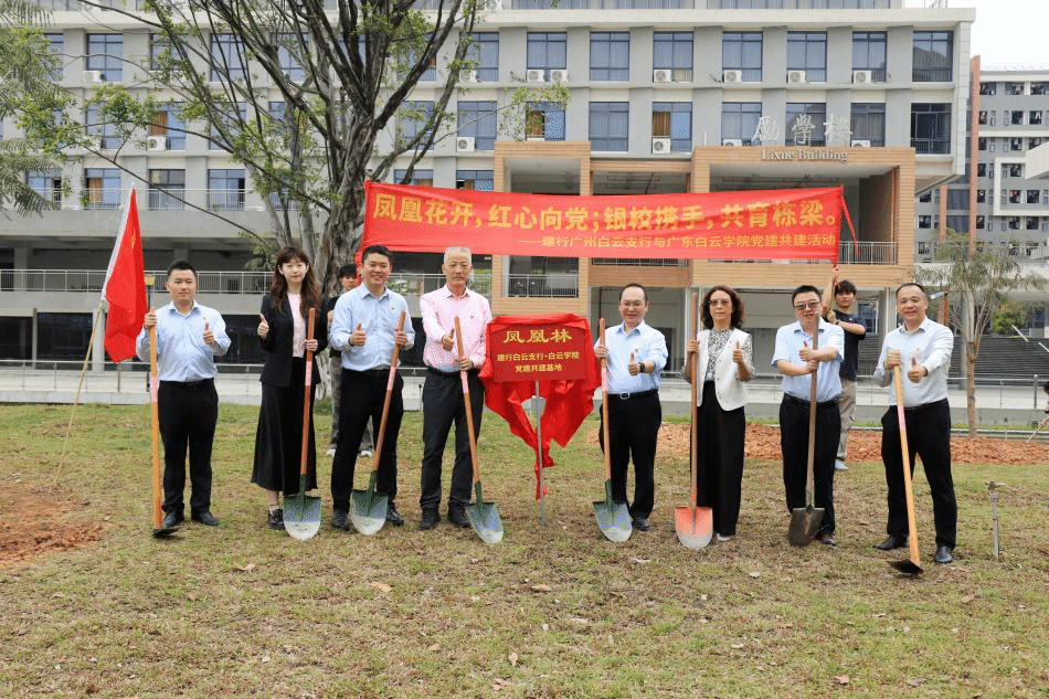 3月20日,广东白云学院与中国建设银行广州白云支行联合开展“凤凰花开 红心向党”党建共建植树活动。双方领导及党员代表共同参与,通过参观党建基地、举行揭牌仪式、共植“同心树”等环节,进一步深化校企党建共建情谊,以实际行动践行绿色发展理念。