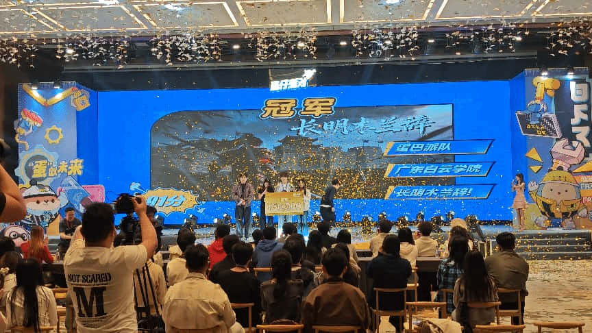 近日,在河南郑州举行的网易《蛋仔派对》GameJam创作大赛全国总决赛中,广东白云学院传媒学院数字媒体与动画系25级学生蔡俊锐,带领张滢、何文晞同学组成的团队,从全国众多高校强队中脱颖而出,勇夺桂冠,荣获唯一一项全国一等奖(冠军),并斩获5万元奖金及网易实习offer。这一成绩不仅刷新了我校在该类赛事中的历史最佳纪录,也标志着传媒学院在产教融合、应用型人才培养方面再结硕果。