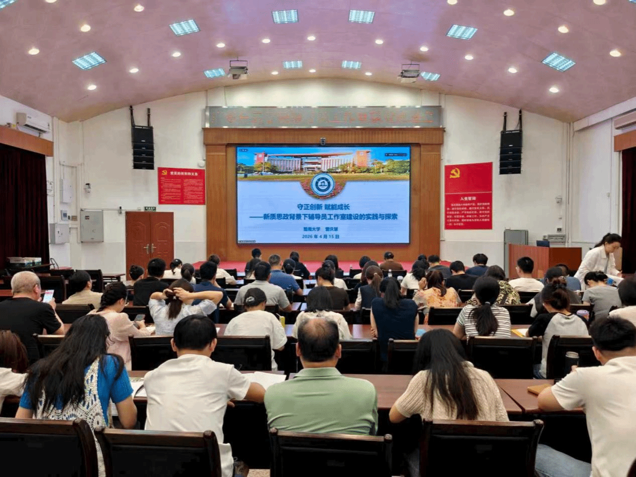 随后,会议邀请暨南大学首批“全国高校辅导员名师工作室”主持人曾庆慧博士作专题讲座。曾庆慧博士以“新质思政与辅导员工作室建设”为主题,从历史脉络、时代需求、能力提升、实践经验四个维度,系统阐述新时代辅导员工作室建设的理论逻辑与实践路径,为我校辅导员工作室高质量建设提供了清晰思路与可借鉴范式。
