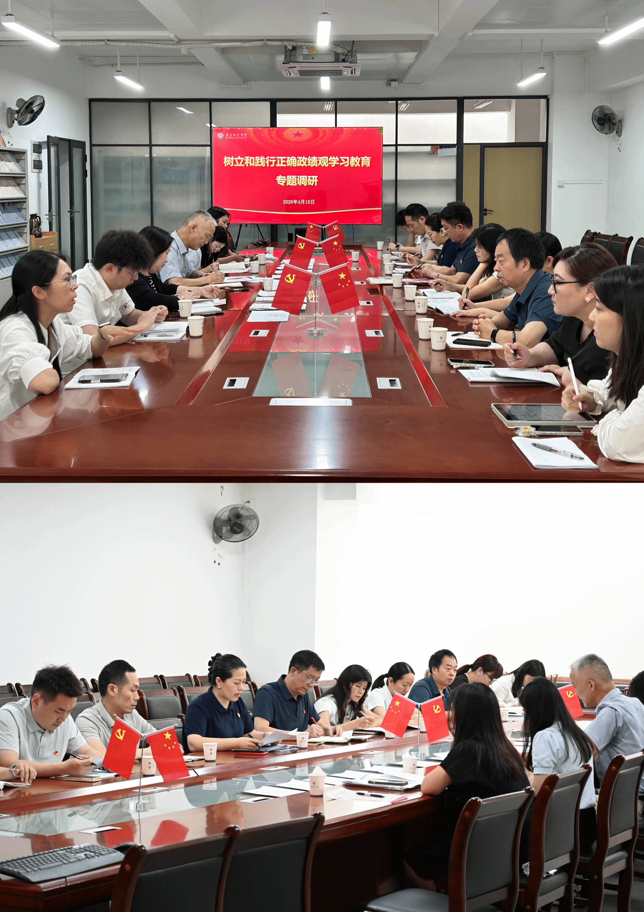 为深入贯彻落实树立和践行正确政绩观学习教育,推动学习教育长效开展、实效落地,党委书记孙国忠、校长刘剑锋于4月15日下午分别开展调研座谈,与一线教师代表面对面交流,倾听师生心声,共谋学校高质量发展。