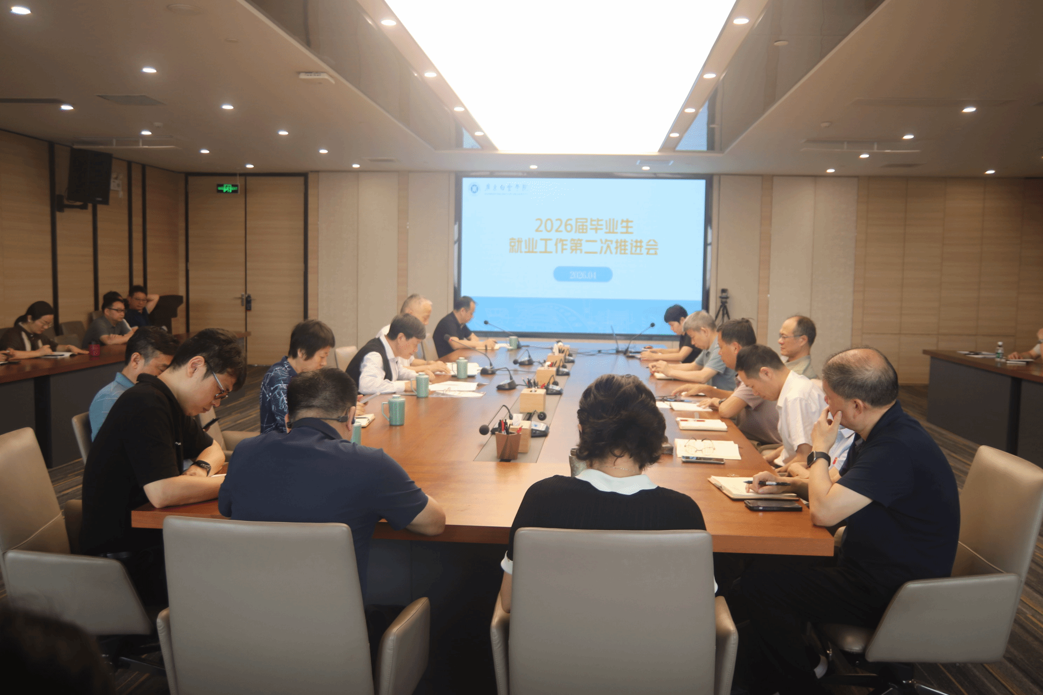 4月16日上午,我校组织召开2026届毕业生就业工作第二次推进会,贯彻落实党中央和国务院决策部署,全面复盘我校2026届毕业生就业工作阶段性进展,查摆问题、交流经验、明确方向。会议提出,要牢固树立以学生为中心的服务理念,切实把就业服务工作落到实处、抓出实效。会议由党委副书记、副校长陈峰主持。