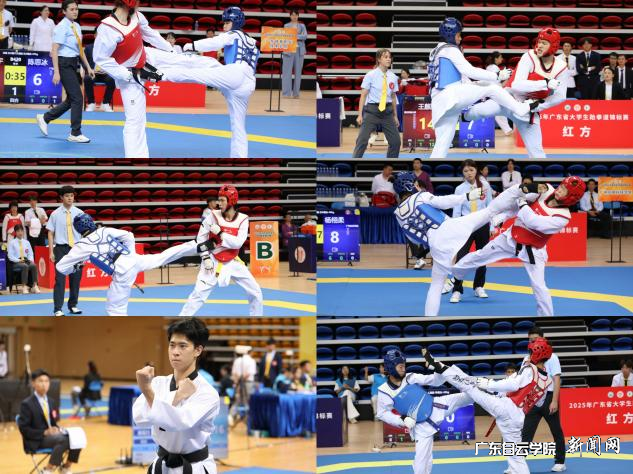 在广东省大学生跆拳道锦标赛的赛场上,白云学子们宛如熠熠生辉的勇士,以精湛实力完美印证了训练场上挥洒的每一滴汗水都饱含价值。当他们登上这方充满激情与挑战的舞台,瞬间绽放出耀眼光芒,每一次出拳带风、每一回踢腿生威,一招一式都锋芒毕露,尽显扎实功底与非凡气势,引得现场掌声雷动、喝彩连连。(图文/体育学院徐梦嫣 责任编辑赵利兴)