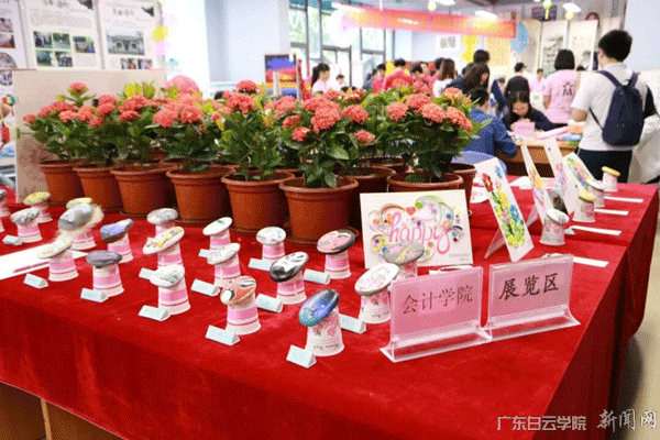 此次活动展出的是以“岭南文化系白云,传统文化沁少年”为主题的岭南传统文化优秀作品,并设置了石头作画、手工彩泥、剪纸等3个体验区。展区靠近窗户的位置陈列了一排排详细介绍岭南文化的展板,囊括“潮州文化”,“广府文化”,“客家文化”,“雷州文化”以及优秀传统文化的载体--石画。这些展品让领导嘉宾及白云学子们能够领略到岭南各地的优秀传统文化,拓宽了他们的视野。另一边是石头作画区,其亮点于特色在于将一些生气勃勃的形象收藏在石头画的艺术世界里,将记忆永远定格,成为用石头承载的历史印记。而在剪纸区,一张张剪成花朵和各种动物形状的剪纸,充分展现出同学们对传统文化的热爱和为此付出的努力。展区四周设立了手工体验区,同学们现场亲身体验岭南特色工艺制作过程,从而感受到岭南传统文化的智慧工艺。