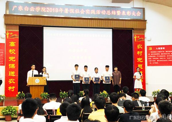 会议在庄严的校歌中拉开帷幕,王晓艳书记宣读了《关于表彰广东白云学院2018年大学生暑假社会实践活动先进集体及先进个人的决定》,对本次社会实践活动中表现突出的团队和个人给予表彰,对本次活动组织成效突出的建筑工程学院、外国语学院、工商管理学院、会计学院授予“优秀组织奖”荣誉。 接着学生代表从社会调研实践经历、求职就业经历和国际志愿服务经历三个方面分享自己在实践中收获的想到和想不到的各种难忘体会。